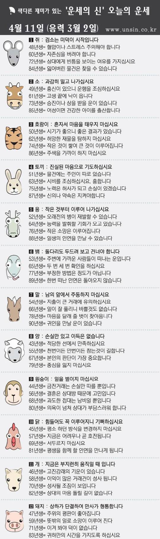 [직장인을 위한 오늘의 운세] 2013년 4월 11일 목요일(음력 3월 2일)