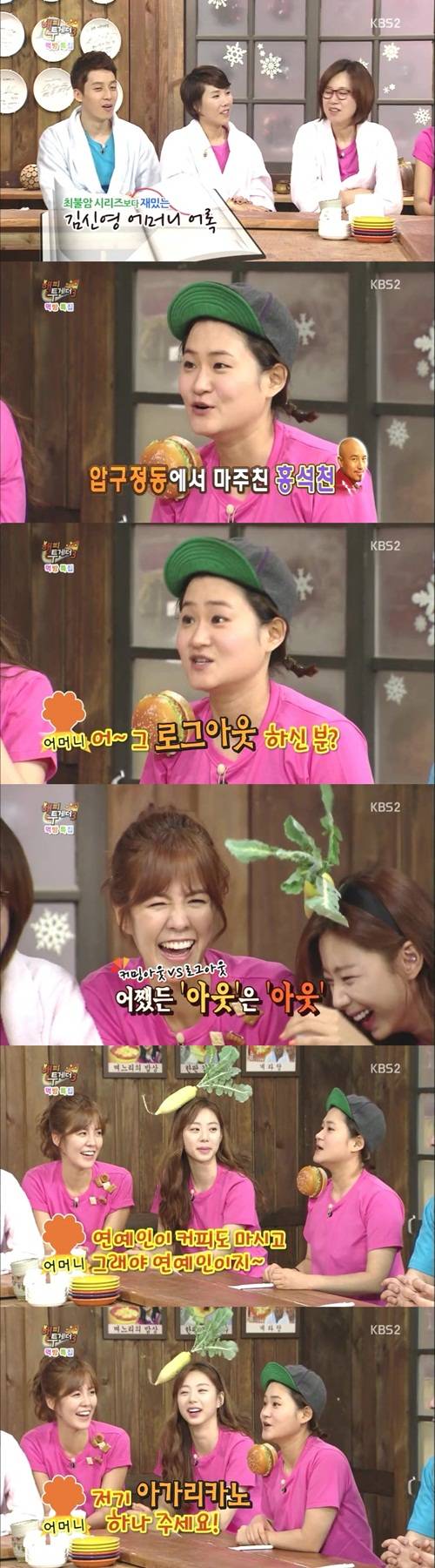 이날 먹방특집에 출연한 김신영은 "어머니 되게 재밌으시잖아요?"라는 MC 박미선의 말에 이른바 '김신영 어머니 어록'을 공개해 웃음을 선사했다.