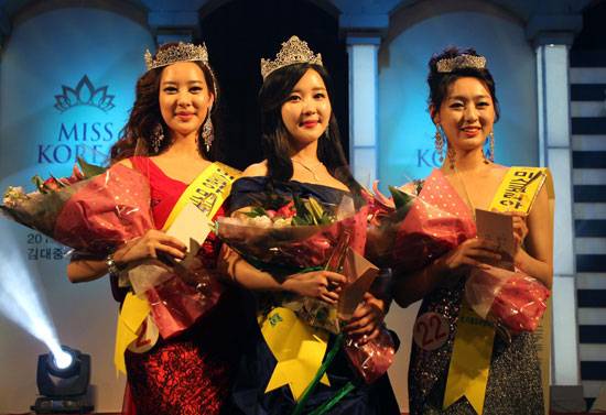 28일 오후 광주 서구 김대중컨벤션센터 컨벤션홀에서 열린 2013미스코리아 광주·전남 선발대회에서 이진주(24·숙명여대 대학원 미디어학·가운데)씨가 영예의 진을 차지했다. 선에는 김효희(21·전남과학대 방송모델 1^왼쪽), 미에는 정아라(19·전남과학대 방송모델 1)씨가 각가 선발됐다.