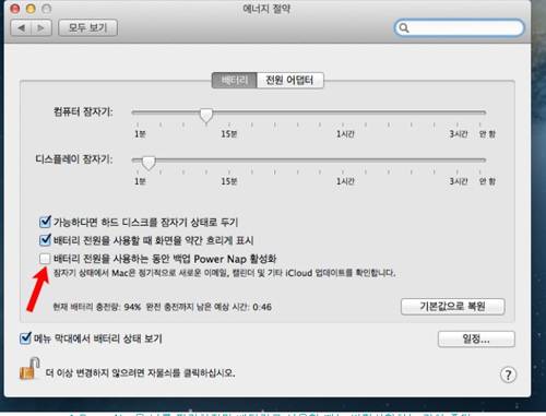 ▲ Power Nap은 나름 편리하지만 배터리로 사용할 때는 비활성화하는 것이 좋다.