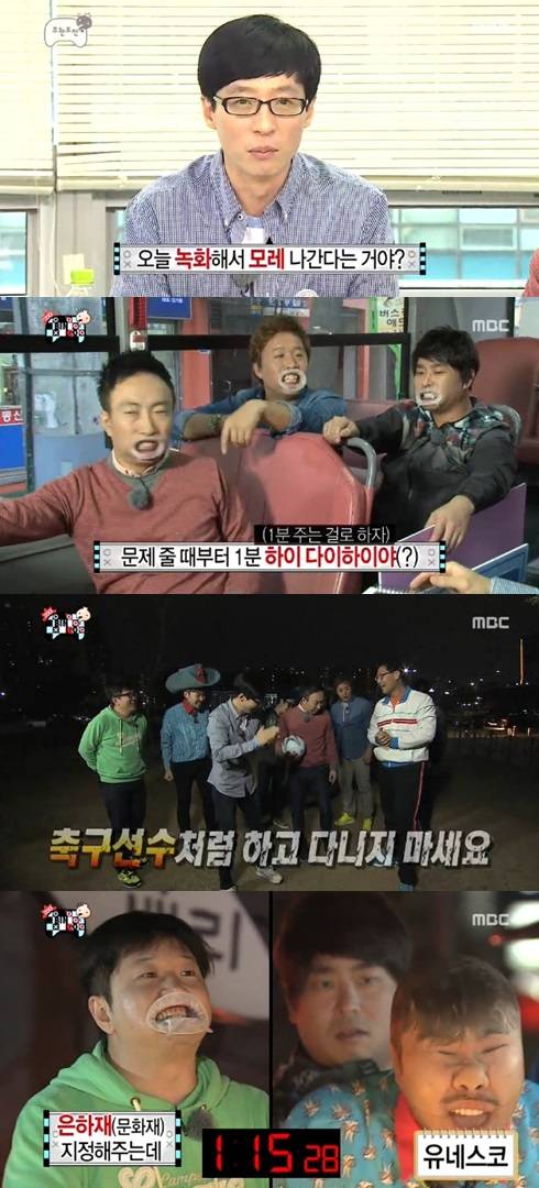 유재석은 회의에서 "솔직히 뮤지컬에 너무 많은 시간을 할애했다"며 "오늘 녹화해서 모레 나간다는거냐고 김태호PD에 물으니 '예'라고 하더라. 그게 가능하다더라. 지금이 목요일 오후 3시다"고 방송분량 부족상황을 알렸다.