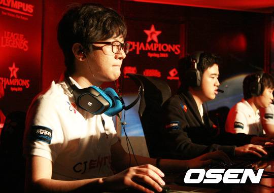 CJ 엔투스 프로스는 17일 저녁 서울 용산 온게임넷 e스포츠 상설경기장에서 열린 '올림푸스 LOL 챔피언스리그 스프링 2013시즌' 나진 소드와 8강전서 비교적 손쉬운 3-1 완승을 거뒀다. 전문가들과 자신들 조차 접전을 예상했던 것과는 다른 결과. 이 완승에는 바로 1세트서 홍민기가 선택한 블리츠크랭크가 신의 한 수였다.