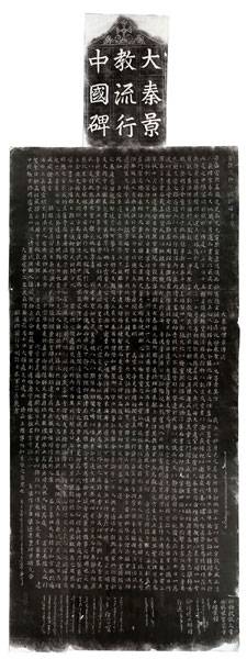 ↑ 당나라 수도 장안 의령방의 대진사에 있었던 '대진경교유행중국비' 탁본. 이 비는 서안의 비림(碑林) 박물관 안에 있다. |
