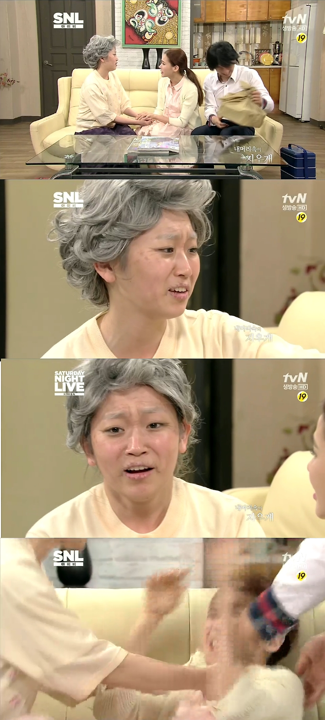 'SNL코리아' 김슬기, 할머니 분장..욕설과 함께 아이비 덮쳐