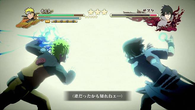 그런 반면 사스케 vs 단조전 같이 비중 있는 전투 장면은 연출하기가 귀찮았는지(?) 어설프게 넘어간다. 덕분에 스토리모드는 정말로 스토리모드가 되어 그냥 멍하니 캐릭터들이 대화를 하는 것만 보는 구간이 상당히 길어지고 결국 지루함을 느끼게 된다. 이런 점이 무조건 나쁘다는 것은 아니다. 나루토 스톰3을 플레이 해보면 4차 닌자대전의 내용을 상당히 충실히 전달하고 있고 특히 나루토와 부모가 재회하여 이런 저런 이야기를 나누는 데서는 감동까지 전해준다. 하지만 기본적으로 액션게임이라는 점을 감안했을 때 이 정도로 대화의 비중이 큰 것이 정답이냐고 묻는다면 아니라고 말하고 싶다. 무엇보다 한글화가 되지 않았기 때문에 일어나 영어를 모른다면....