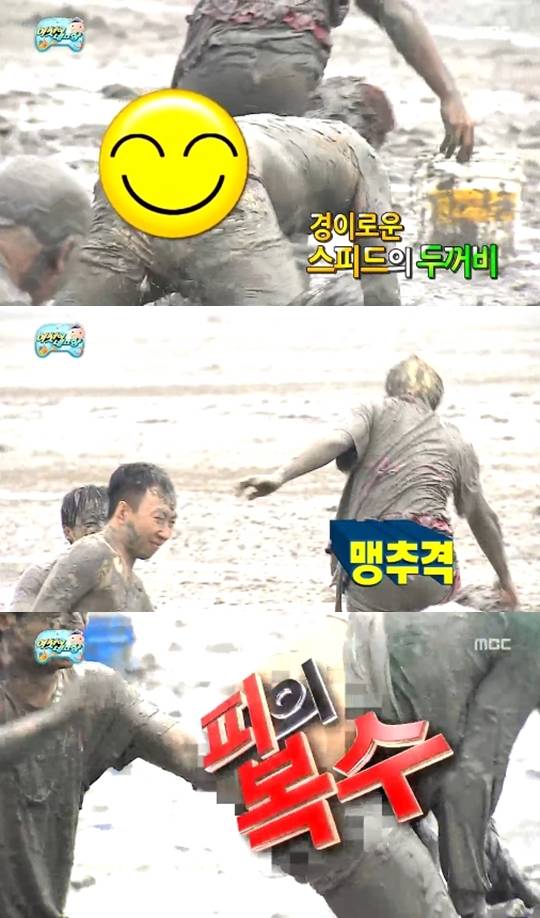 [티브이데일리 강효진 기자] '무한도전'이 갯벌 몸개그에서 공개된 멤버들의 몸을 모자이크하는 모습으로 폭소를 자아냈다.