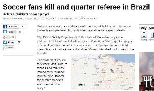 브라질에서 축구 경기 도중 참혹한 살인사건이 발생했다.