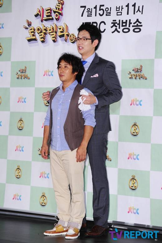 [TV리포트 = 문수지기자] 배우 김병만, 아나운서 장성규가 15일 오후 서울 중구 을지로 메가박스 동대문점에서 열린 JTBC 시트콩 '로얄빌라'(김석윤 연출) 제작발표회에 참석해 포토타임을 갖고 있다.
