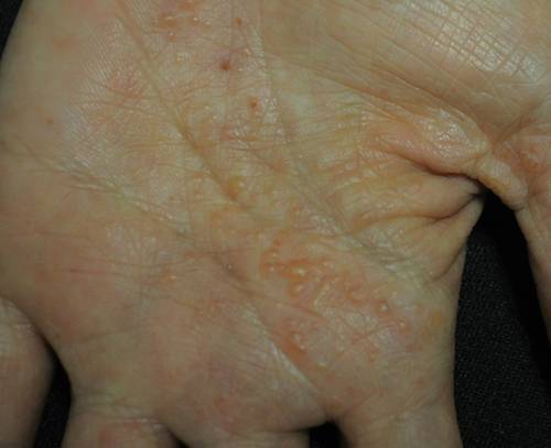 손과 발에 주부습진과 유사하게 수포가 나고 가려움증과 통증이 나타나는데 이를 단순 주부습진으로 생각하고 방치하거나 잘못된 치료를 하는 사람들이 많다. 이는 주부습진과 비슷한 형태로 나타나지만 다른 피부질환인 한포진이다.