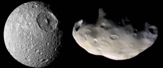 미항공우주국(NASA. 이하 나사)은 지난달 30일(현지시간) 토성 탐사선 카시니(Cassini) 호가 관측한 토성의 위성 2개 모습을 공개했다.
