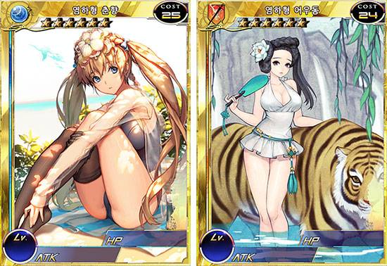 염하형 카드는 여름을 맞아 비키니를 입고 등장하는 미소녀 카드이다. 이번에 추가된 춘향, 어우동, 색동, 우렁각시 등의 염하형 카드는 기존 국내 일러스트레이터들이 참여한 국내용 카드를 염하형으로 새로 그린 버전이며 이 카드들을 수집하면 확인할 수 있는 서브 스토리도 함께 추가됐다.