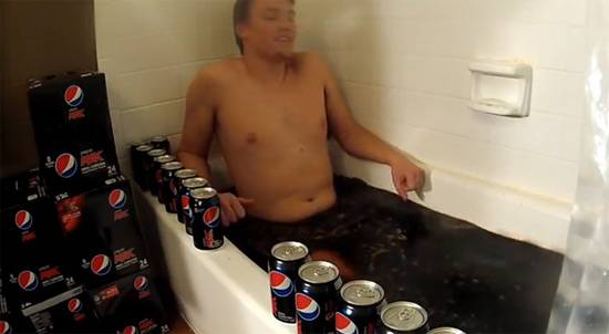 '콜라로 목욕하는 남자'가 공개돼 네티즌의 이목을 끌고 있다.