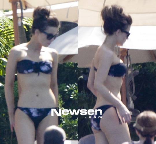 공개된 사진 속 케이트 베킨세일은 꽃무늬가 그려진 남색 튜브톱 비키니를 입은 채 몸매를 과시하고 있다. 케이트 베킨세일은 불혹의 나이에도 불구하고 전성기와 다름없는 몸매를 선보여 관리의 중요성을 다시 한 번 일깨워줬다.