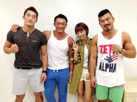 [OSEN=강서정 기자] 배우 신소율이 이종격투기 선수 추성훈, 김동현, 배명호와 찍은 인증샷을 공개했다.