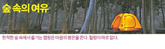 캠핑 인구가 증가하면서 전국에 크고 작은 캠핑장도 늘어나 600여개나 된다고 한다. 너무 많아 어디를 갈지 정하기도 쉽지 않을 지경이다. 그 중 경치 좋은 곳, 레포츠를 즐길 수 있는 곳 등 5개 테마별로 각각 4군데 씩, 총 20곳을 골랐다. 이제 입문을 원하는 초보자들을 위해 캠핑 장비 고르는 법도 덧붙였다.