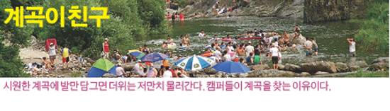 시원한 계곡물에 발만 담그면 더위는 저만치 물러간다. 캠퍼들이 계곡을 찾는 이유이다.