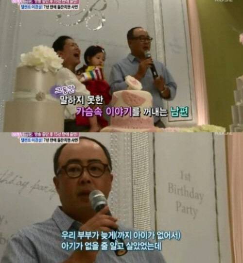 또 이경심의 남편인 골프선수 김창민은 "바쁘신 시간 중에도 저희를 축하해주러 와주셔서 감사드린다"면서 "우리 부부가 늦게까지 아기가 없이 살 줄 알고 강아지를 9마리나 키웠다. 늦게나마 이렇게 예쁜 아이가 태어나게 돼서 감사하다"고 울먹였다. 이어 남편 김창민은 "늦게 낳은 아이 잘 키울테니까 많이 지켜봐주시기 바란다"고 덧붙였다.