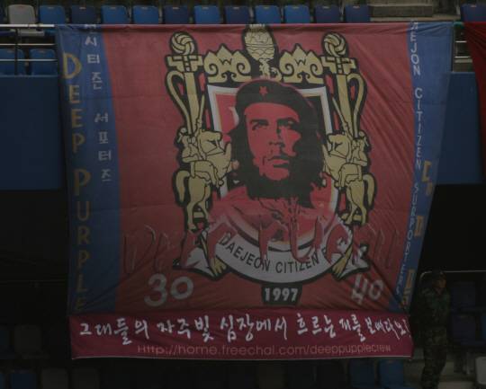 2007년 4월 1일 체 게바라 초상 사진을 크게 내건 대전시티즌 팬들. 실존인물과 전혀 다른 이미지로 소비