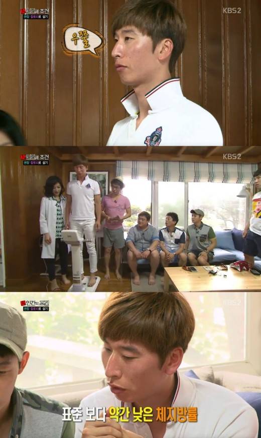 31일 방송된 KBS2 '인간의 조건'에서는 '권장칼로리로 살기' 첫 번째 이야기가 그러졌다. 멤버들은 건강의 기본부터 돌아보기 위해 권장칼로리를 지키며 식단 조절과 운동을 병행해야 한다.