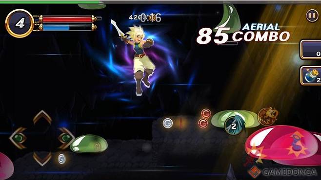 이밖에도 횡스크롤 액션 게임에 익숙한 게이머는 퀵 슬롯 창을 이용한 스킬 버튼 외에도 다양한 커맨드 입력을 통해 화려한 액션을 만끽할 수 있다. 다만, 비슷한 장르의 게임을 접해보지 못했거나 조작에 서툰 게이머 게임의 난이도가 어렵게 느껴질 수도 있을 것으로 보인다.