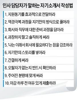 자신을 한 단어로 표현하라..사례 들어 스토리를 담아라..욕심내지 말고 간결하게 써라