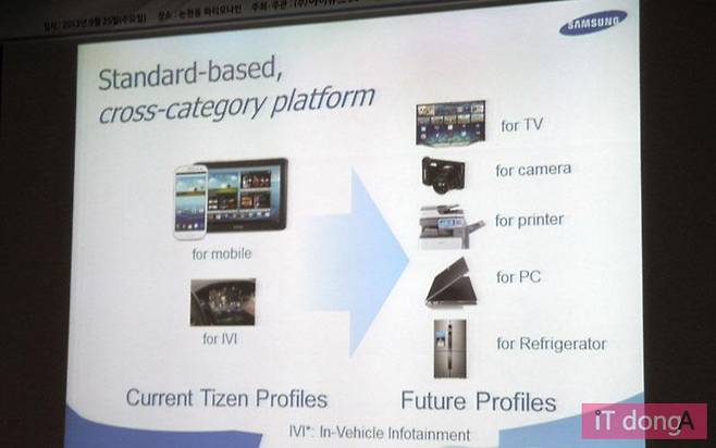 타이젠은 오픈 플랫폼인 만큼 TV, 카메라, 자동차, 프린터, 냉장고 등 다양한 전자제품에 적용할 수 있다. 타이젠이 여러 제품들을 한꺼번에 아우르는 표준 플랫폼으로 자리매김할 경우, 이에 따른 시너지도 기대된다. 이와 관련해 최 부사장은 "어떤 기기에도 적용할 수 있는 플랫폼이 있다면 그에 맞는 앱, 서비스, 콘텐츠를 개발하기도 쉬울 것이다"라며, "삼성전자는 스마트폰, TV, 냉장고, 세탁기 등 대부분의 전자제품을 만든다. 그런 만큼 다양한 기기를 아우르는 표준 플랫폼을 만드는 것도 잘할 수 있다"고 자신감을 보였다.
