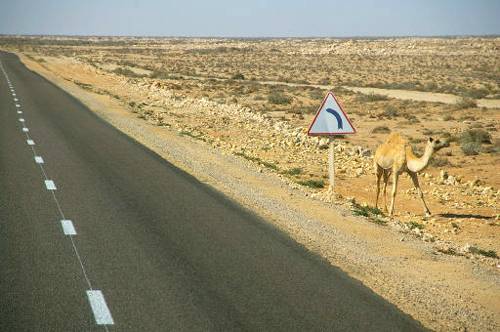 서사하라의 길에는 낙타만 다닐 뿐이다. |