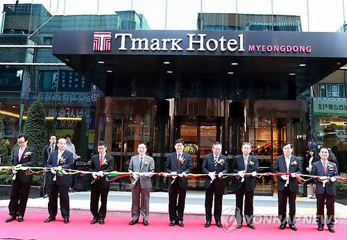 (서울=연합뉴스) 하나투어가 14일 서울 중구 충무로에 티마크호텔을 개관했다. 티마크호텔은 지상 14층, 지하4층 규모의 288개의 객실을 갖춘 투어리스트급 호텔로 객실 내부에는 32인치 LED TV, 욕조와 비데, 초고속 무료 인터넷 등을 갖추고 있다. 2013.10.14 < < 하나투어 > >