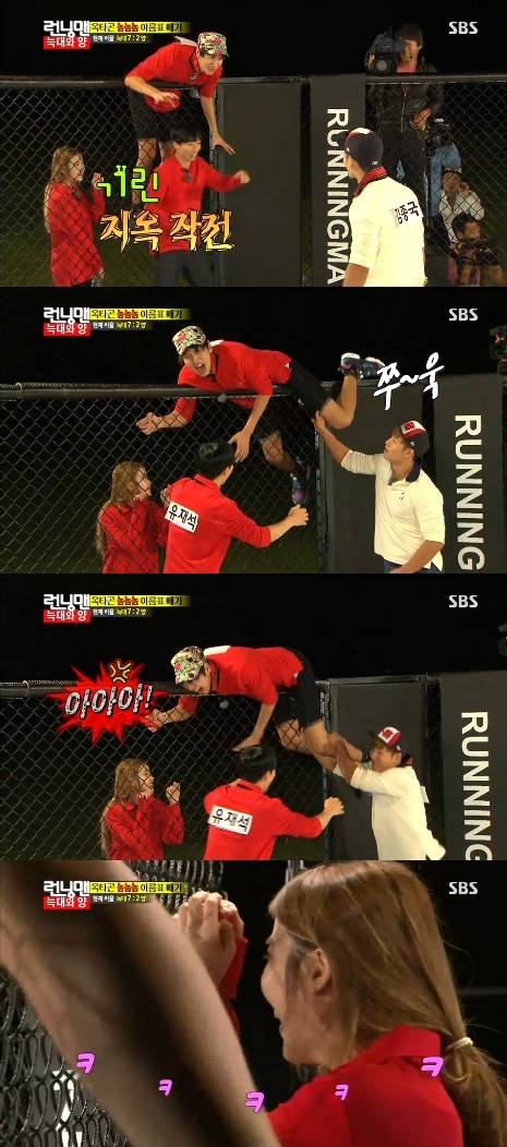 '런닝맨' 김종국이 이광수의 급소를 공격했다.