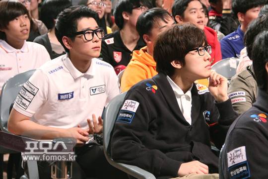 반면 표정에 변화가 없는 삼성 블루 '에이콘' 최천주와 CJ 이호종