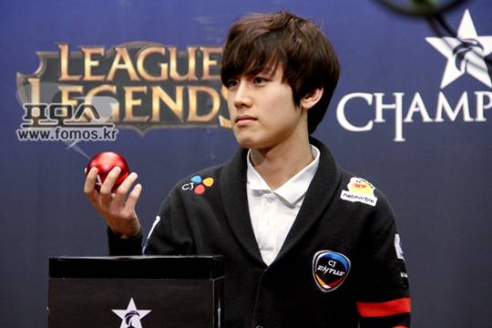 늠름하게 공을 뽑아든 CJ 블레이즈 '플레임' 이호종, A조에 속하게 됐다