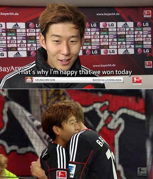 손흥민은 지난 9일 독일 바이 아레나에서 열린 함부르크와의 '2013~2014 분데스리가' 12라운드에서 헤트트릭-1도움의 활약을 펼쳐 눈길을 끌었다. 당시 활약상과 함께 손흥민이 경기 후 밝게 웃으며 "오늘 우리팀이 경기에 이겨 기쁘다"는 소감을 유창한 독일어를 구사해 눈길을 끌었다.