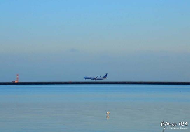 나는 다시 도로를 건너 바닷가 쪽으로 다가갔다. 약 1km 저쪽 바다 중간에 활주로가 있다. 바로 그 아시아나 여객기가 사고 난 바다의 활주로다. 부딪힌 그 끄트머리 부분도 눈에 확 들어왔다. TV에서 본 영상을 찍은 사람이 이곳에서 촬영했음이 분명했다. 2분 마다 비행기가 착륙했다. 내가 서 있는 산책길은 바다 쪽으로 1m 높이의 콘크리트 담장이 쳐져 있으며 그 너머 축대엔 약간의 뻘과 바닷물이 이어져 있었다. 간혹 조깅하는 사람도 있었다.