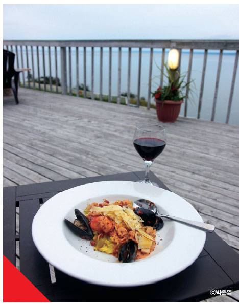 등대처럼 빛나는 신선한 해산물케이프 하우스 레스토랑Cape House Restaurant호프웰 록스에서 만난 현지인으로부터 이 지역 등대 절벽인 케이프 인레이지Cape Enrage의 레스토랑 타이즈Tides를 추천받았다. 운전을 하고 갈 때는 케이프 인레이지( www.capeenrage.ca)를 그냥 경치 좋은 전망대 정도로 생각했지만, 알고 보니 절벽 높이만 50m이고 1847년에 뉴브런즈윅 최초의 등대가 세워진 이 지역의 대표적 랜드마크 중 하나였다. 빨간 지붕의 아기자기한 건물을 차지한 레스토랑은 이미 예약 손님들로 가득 차 있었다. 유쾌했던 매니저 카라Cara Beth에게 추천받은 음식은 이 집의 대표 메뉴인 차우더 스프Raging Chowder($10). 펀디만의 해산물을 듬뿍 넣어 진하게 끓여낸 것이었다. 그 진한 풍미에 어울리는 와인을 시키지 않을 수 없어서 이 지역에서 생산된 메를로Merlot 한잔을 곁들였다. 메인 메뉴는 해산물 페투치네Seafood Fettucini($23). 파스타 위에 듬뿍 올라간 로브스터, 홍합, 새우, 가리비 등은 모두 바로 앞 펀디만에서 잡은 것들이었다. 우리나라의 대파에 비해 좀더 맛이 순했던 이 지역 대파Leek를 이용해 풍미를 살린 것이 독특했다. 그 위에 치즈의 도시인 서식스Sussex의 아마데일 농장Armadale Farm에서 받아 온 파마산 치즈를 조금 두껍게 썰어 넉넉하게 올려냈다. 면은 계란 노른자를 듬뿍 넣어 직접 만든 페투치네 생면. 말린 토마토 페스토 소스가 아주 마음에 들었는데 적은 양만 사용했음에도 진하고 달콤한 토마토의 풍미가 잘 살아있었고, 신선한 재료들이 그 안에서 서로 조화를 이루는 느낌이었다. 산꼭대기에 위치해서 이동에 시간이 조금 걸리지만, 우회할 만한 가치가 충분한 곳이었다.케이프 하우스 레스토랑Cape House Restaurant | 홈페이지 www.capeenrage.ca/en/plan-your-trip/restaurant참고 저녁 식사를 하려면 6시30분까지는 도착해야 한다.