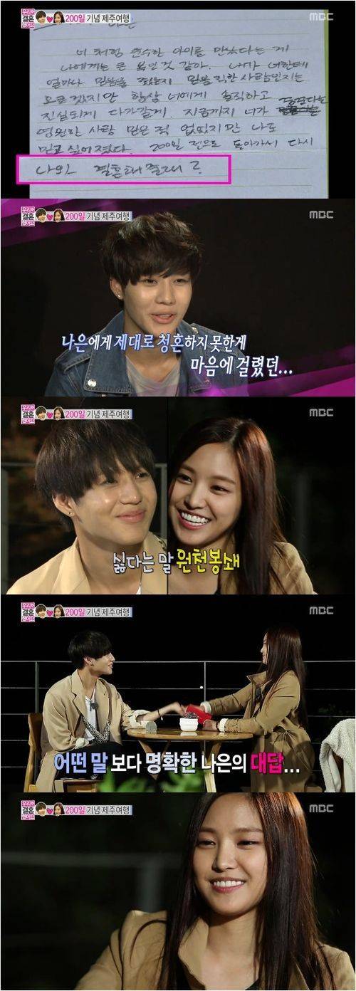 그리고 태민은 손나은에게 편지를 통해 "나와 결혼해줄래?"라고 물었고, 손나은은 말없이 손을 잡았다.