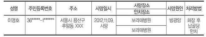 "최명식 씨가 돌아가신 게 저희가 기초생활수급자 신청을 하려고 서류를 준비하던 중이었어요. 부모도 안 계셔서 전부인께 연락했지만 단칼에 거절하시더라고요. 아드님도요. 할 수 없이 우리가 대리신청을 하려고 했는데, 그렇게 갑자기 돌아가시더라고요."