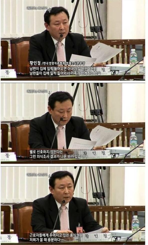 누리꾼들은 장시간 노동이 삶의 질을 떨어뜨림에도 '일요일 출근'이라는 대처법을 내놓은 것에도 분노했다. 실제로 우리나라의 연간 노동시간은 경제협력개발기구(OECD) 가입국 평균(2011년 기준·1696시간)에 견줘 420시간이나 길다. 주당 48시간 이상 노동을 하는 노동자 비율(54.0%)도 영국(34.5%)이나 미국(24.3%) 등 선진국보다 배 가까이 많다.