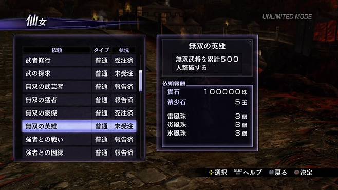 그런데 사실 무쌍오로치 시리즈도 약점은 명백하다. 막말로 하나의 필드에서 3~5명 캐릭터 돌려쓰기, 잡다 캐릭터가 총출동한다는 점을 제외하면 언제나 무쌍 일변도인 시리즈 작품들 중에서 존재의의가 없는 거나 마찬가지다(물론 이 점이 가장 매력적인 시리즈라 이것만으로도 시리즈 연계가 이어지고 있다). 그래서 잡다한 캐릭터도 캐릭터 돌려쓰기도 끌리지 않는다면 무쌍오로치 시리즈를 붙잡을 이유가 없었는데, 무오2U에 와선 사정이 좀 많이 바뀌었다. 새로 등장한 언리미디트 모드의 등장 때문이다.