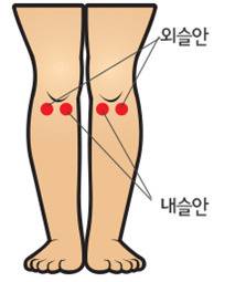 무릎을 구부린 상태에서 슬개골 바로 아래 움푹 패인 자리