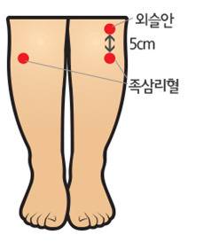 무릎 주변의 혈액순환을 돕고 소화기 질환에도 효과가 있는 혈자리이다