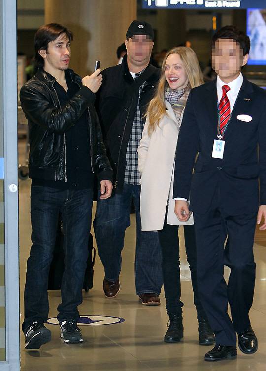할리우드 배우 아만다 사이프리드가 남자친구인 배우 저스틴 롱과 함께 입국했다.