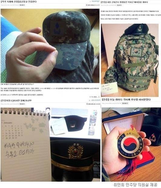 현역 군인들이 일베유저임을 인증한 사진들(=최민희 민주당 의원실 제공) |