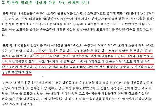 - 그 당시 인터뷰 내용은 뭐였나."그 때 내가 입원했던 병실에서 인터뷰를 했다. 평소에 알던 기자 두 분이 오셨다. 무릎 상태가 안 좋아서 입원 중이었기 때문에 몸 상태에 대해서도 얘기했고, 팬들이나 관계자 분들에게 죄송하다는 말도 했다. 또 사건의 전말도 내가 보고 듣고 했던 내용을 그대로 전했다. 그런데 기다려도 기사가 안 나왔고 자포자기했던 것 같다. 그 이후로 아프리카TV 방송을 하든 뭘 하든 인터뷰를 하자고 한 사람은 없었다. 만약 그런 게 있었다면 지금 내가 하는 말들이 1년 전이든 3년 전이든 먼저 나왔을 것이다."