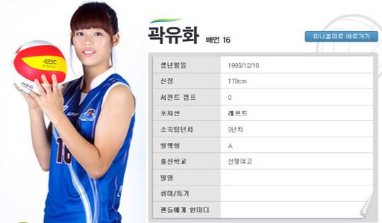 여자프로배구 한국도로공사 하이패스제니스 소속 '얼짱' 배구선수 곽유화의 미모가 화제다.