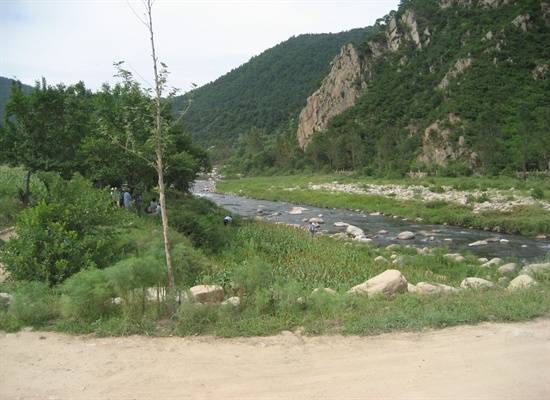 칠보산으로 향하는 북한 관광객을 태운 버스 몇 대가 개울 옆에 서 있다. 버스에서 내린 사람들은 개울물에 발을 담그고 휴식을 취하고 있다. 우리도 그곳에서 10분쯤 쉰다고 한다.