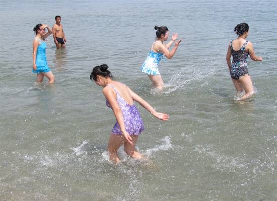 그곳에 있는 사람들은 예쁘게 치장을 하고 피서를 왔나 보다. 많은 여성들이 정성스럽게 화장을 했을 뿐 아니라 목걸이도 하고 있다. 또 어떤 이들은 멋진 선글라스를 쓰거나 머리 위에 액세서리처럼 얹어놨다. 몇몇 사람은 귀걸이까지 하고 있다. 평양의 가스맥줏집에서 여성들이 귀걸이를 하고 있는 모습을 봤는데, 함경도 해변에도 세련된 귀걸이를 한 여성이 있다는 사실이 조금 놀랍다. 전에는 상상하지 못했던 모습들이다.