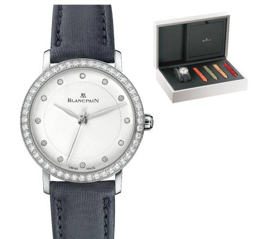 블랑팡의 시그너처 컬렉션인 빌레레 컬렉션의 여성용 울트라 슬림 포 우먼은 극도로 간결하게 표현된 디자인을 바탕으로 베젤에 다이아몬드를 세팅해 여성스러운 동시에 화려한 이미지를 표현했다. 또한 스틸 케이스에 블랙 무광 새틴 스트랩을 기본으로 손쉽게 교체할 수 있는 오렌지, 그린, 베이지, 와인 총 네 가지 컬러의 앨리게이터 및 리저드 소재 스트랩이 제공되는 스페셜 박스 세트는 우아한 여성들을 위한 연말 선물로 알맞다. 02-3438-6268