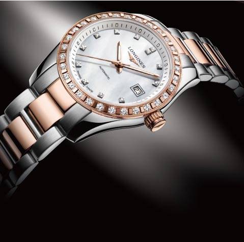 올겨울 따뜻함을 선사할 18K 로즈 골드 & 스틸 케이스와 베젤과 인덱스의 다이아몬드가 돋보이는 론진 콘퀘스트 클래식이 국내에 처음 선보인다. 지름 29.50mm 케이스의 여성용 모델에는 30개의 다이아몬드가 세팅돼 기계식 칼리버 L595가 탑재돼 있다. 12개의 다이아몬드 인덱스가 장식된 화이트 MOP 다이얼은 시·분·초, 그리고 3시 방향에 날짜창을 나타낸다. 50m 방수가 가능하며 스크루 다운 백케이스는 사파이어 글라스로 돼 있다. 02-3149-9532