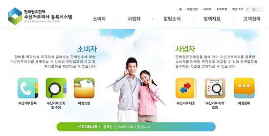 스팸전화 차단 수신거부의사 등록시스템이 운영된다.