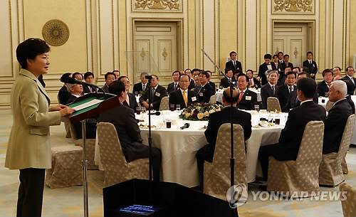 박 대통령은 또 "경제계는 과감한 혁신과 투자로 일자리를 창출하고 국제경쟁력을 더욱 높여서 국민소득 4만불 시대를 앞당겨야 한다"고 강조했다.